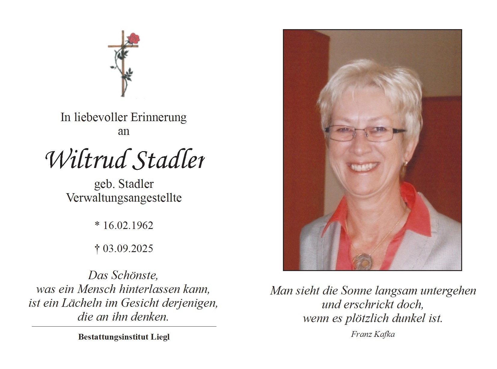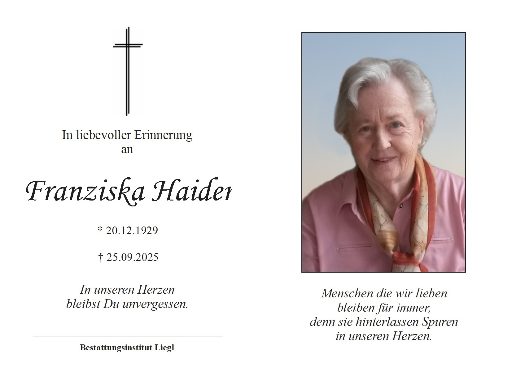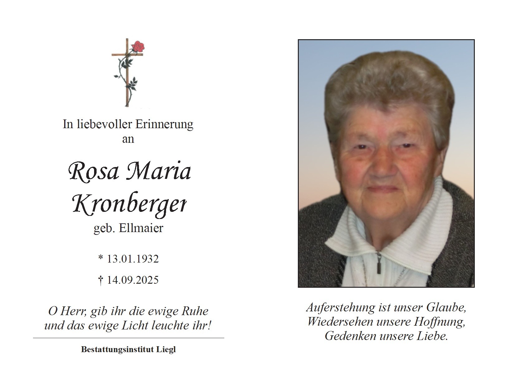 Trauerfeier am Donnerstag, den 25. September 2025 um 14 Uhr in der Pfarrkirche Oberneukirchen, anschließend Beerdigung.