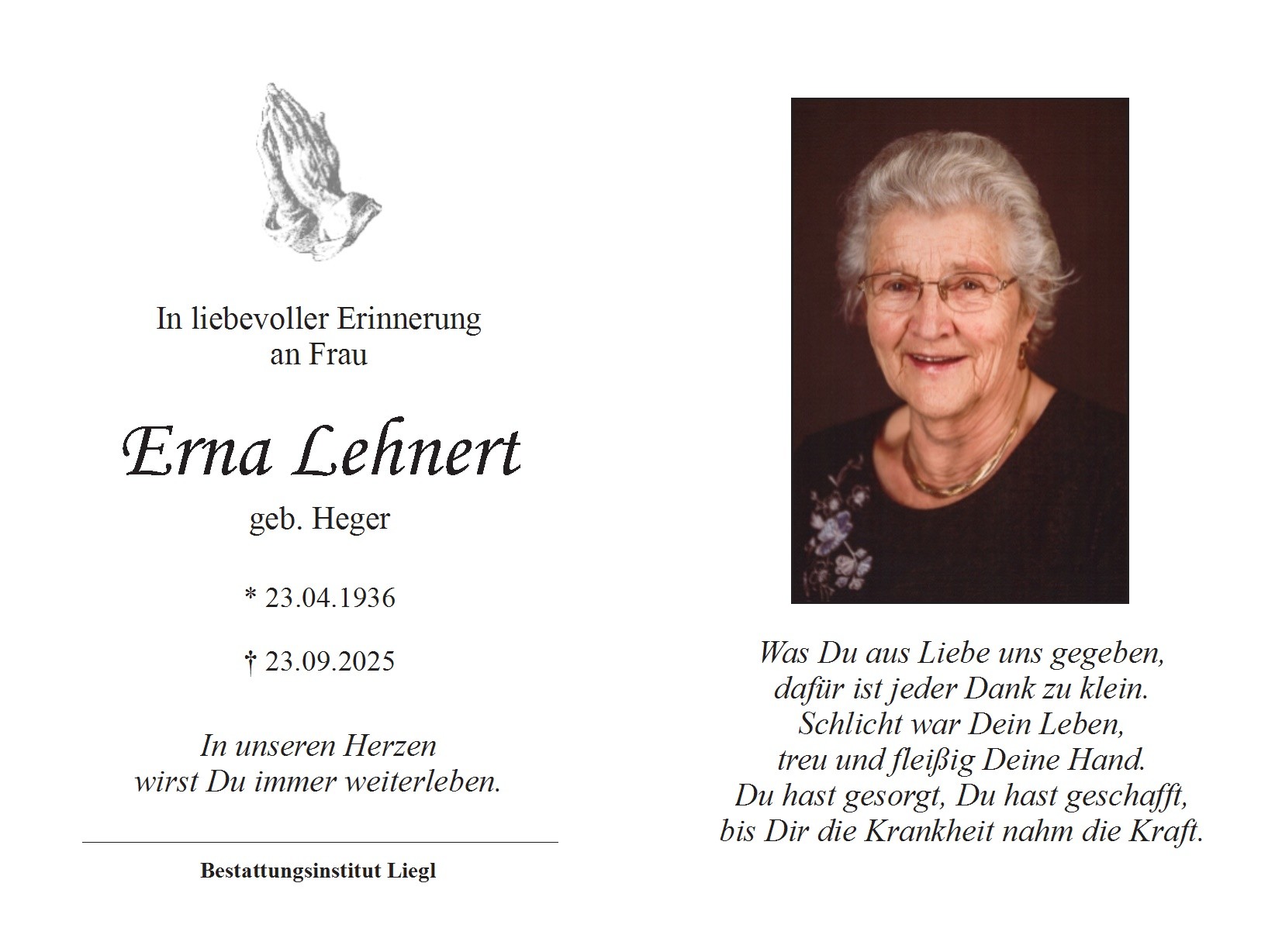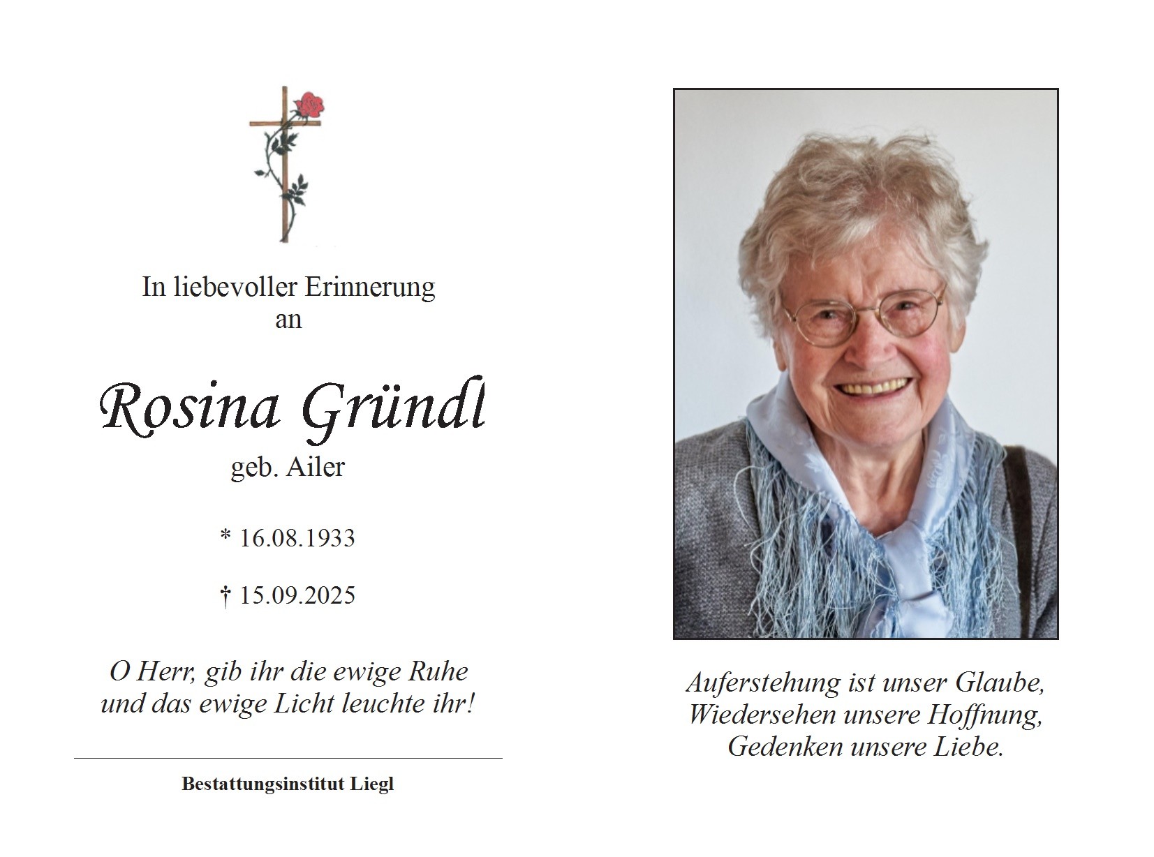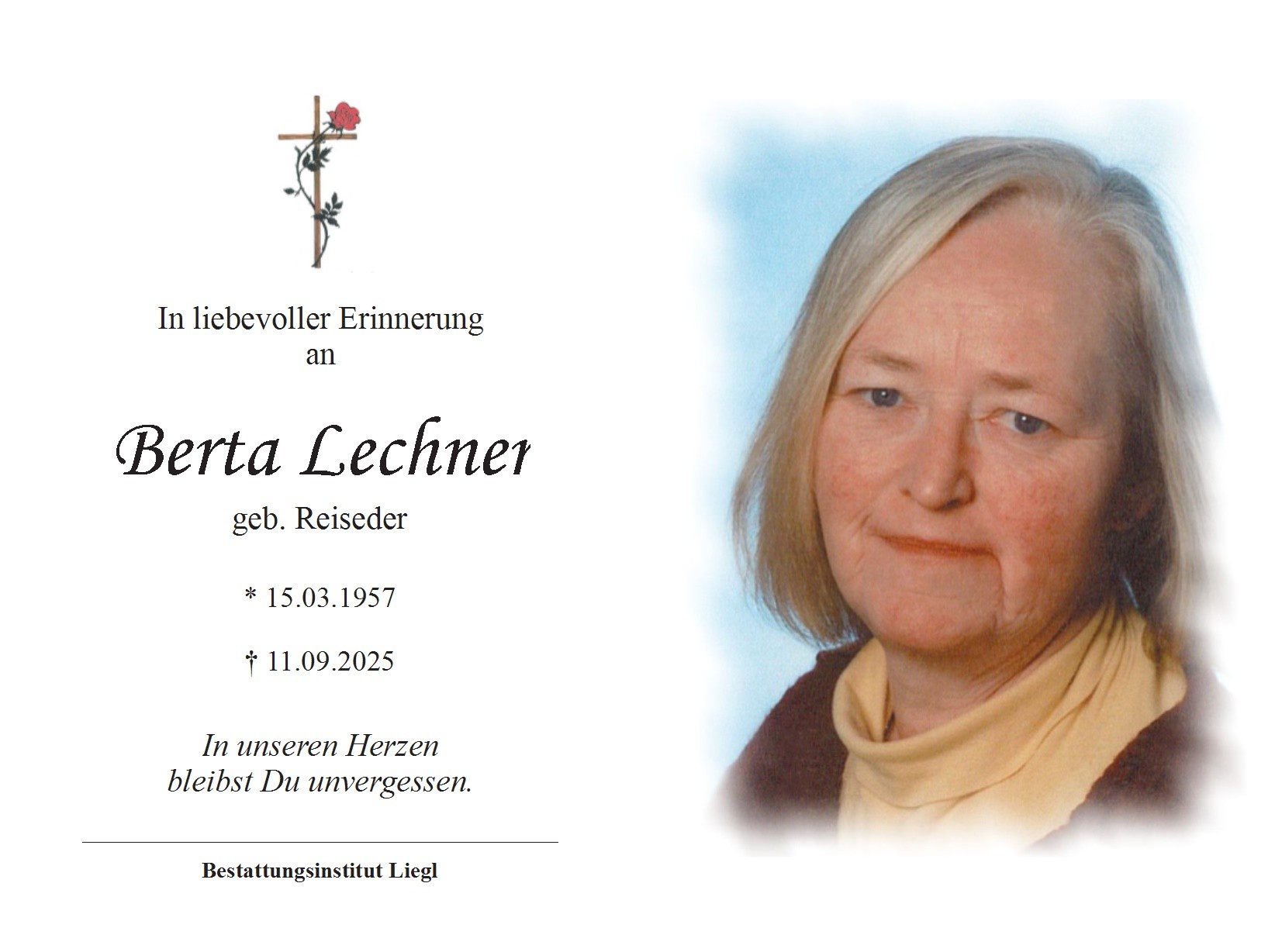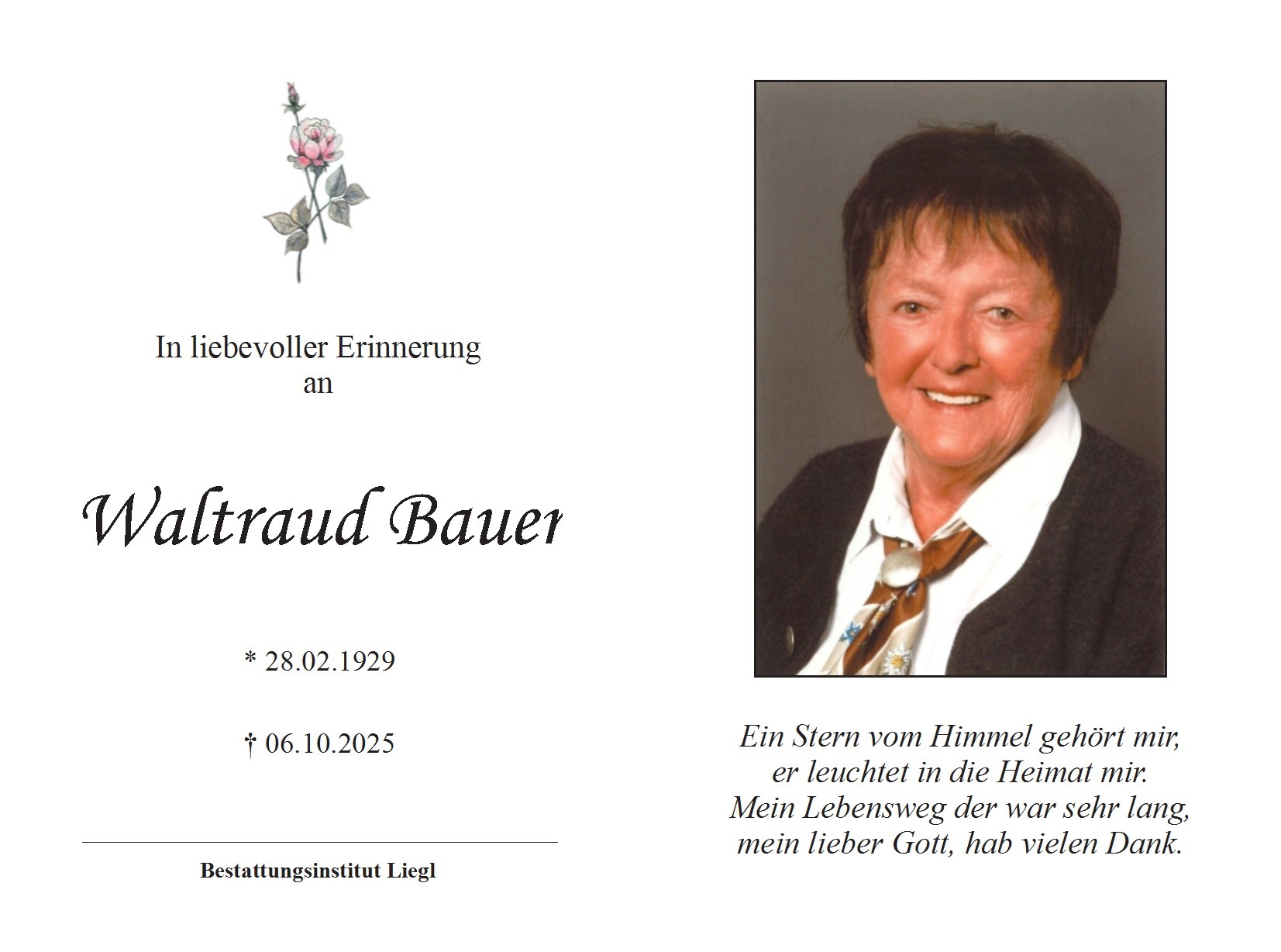 Trauerfeier am Donnerstag, den 25. September 2025 um 14 Uhr in der Pfarrkirche Oberneukirchen, anschließend Beerdigung.