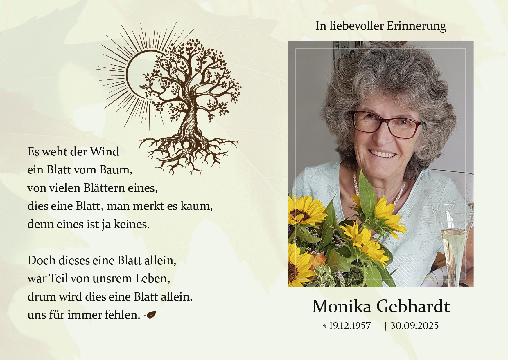 Trauerfeier am Donnerstag, den 25. September 2025 um 14 Uhr in der Aussegnungshalle Ismaning.