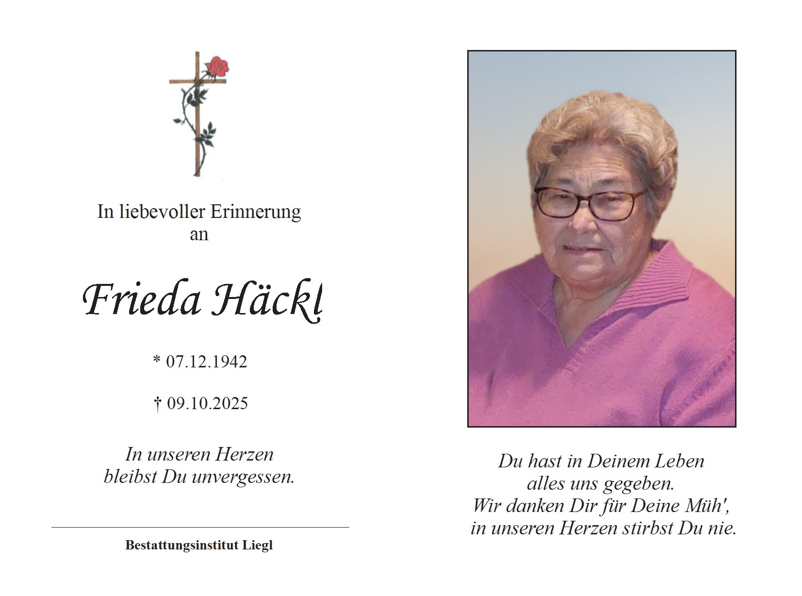 Frieda Häckl ✝ 09.10.2025