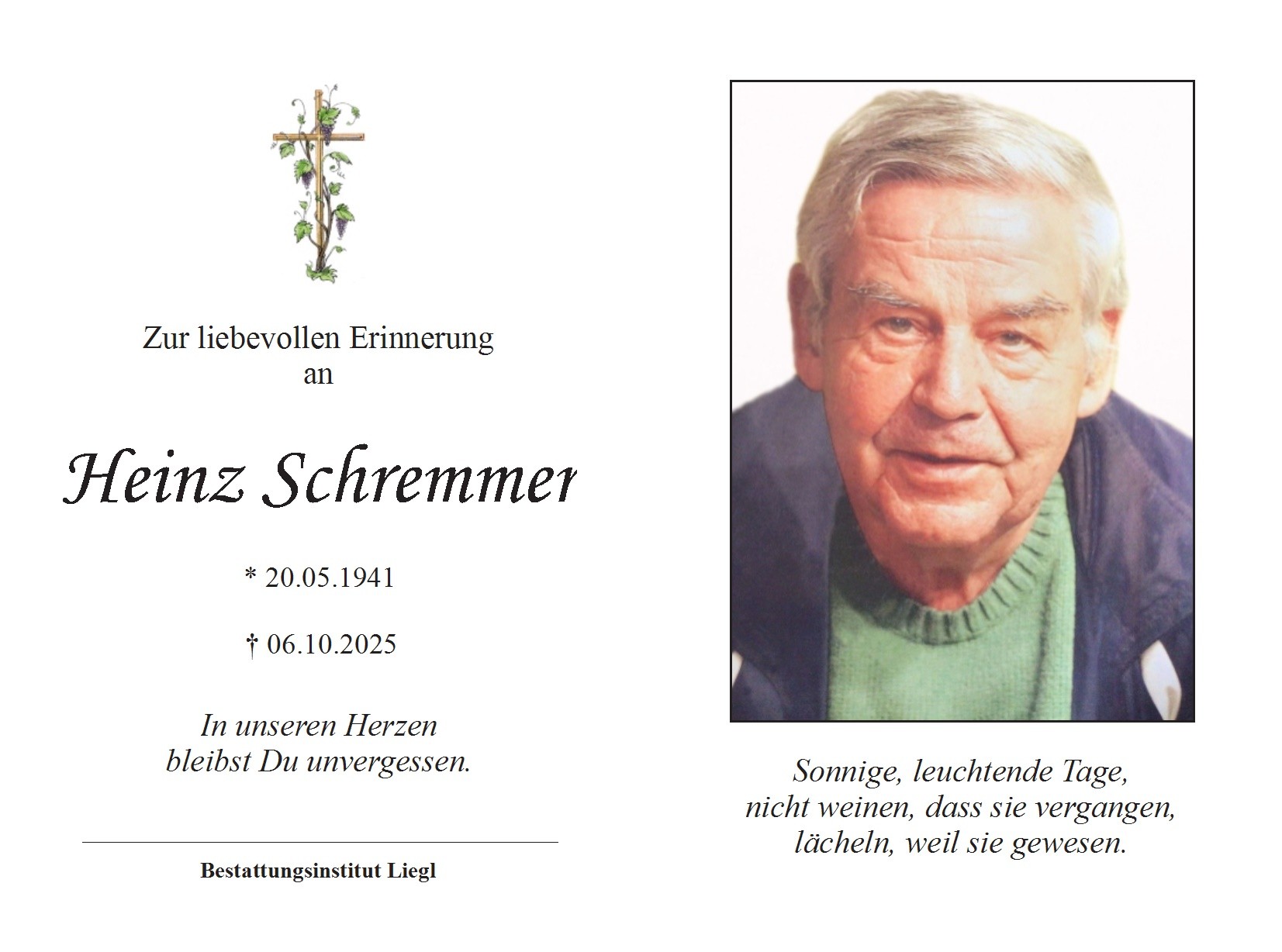 Heinz Schremmer ✝ 06.10.2025